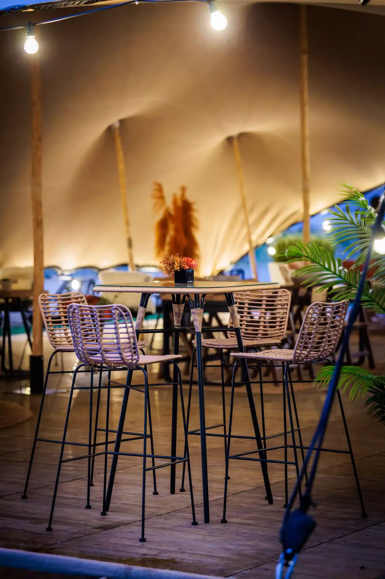 Paired with the matching bar stools, it’s perfect for outdoor receptions, festivals and also indoor events, bringing elegance and refinement to any setting.