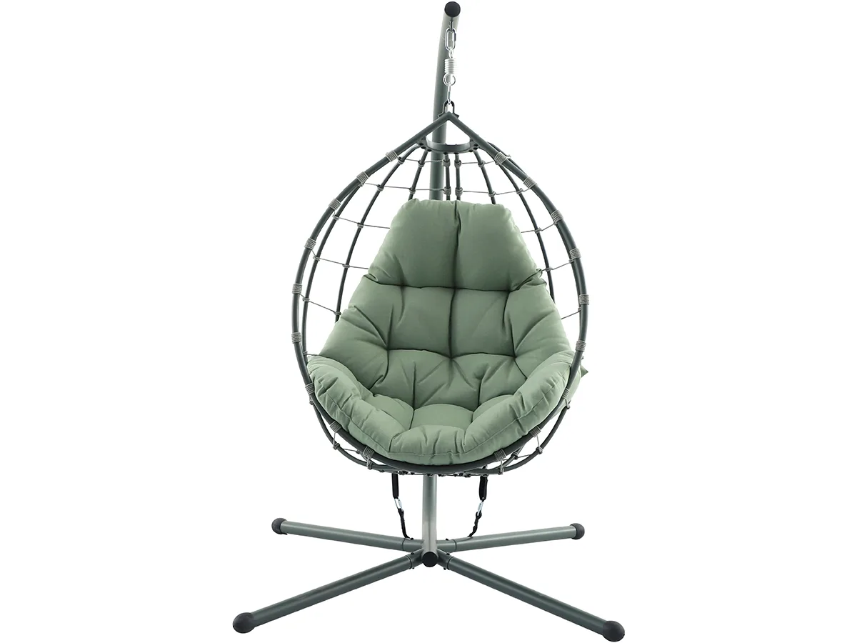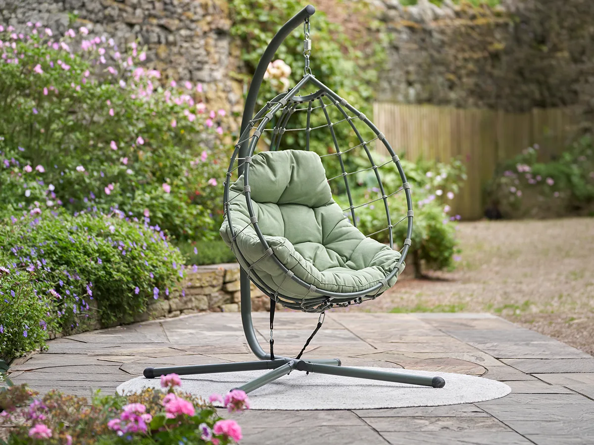 Finished in a moss-green shade, this hanging chair would make a great photo-op piece on its own, or paired with our other outdoor ranges to transform your event space in a relaxing oasis.