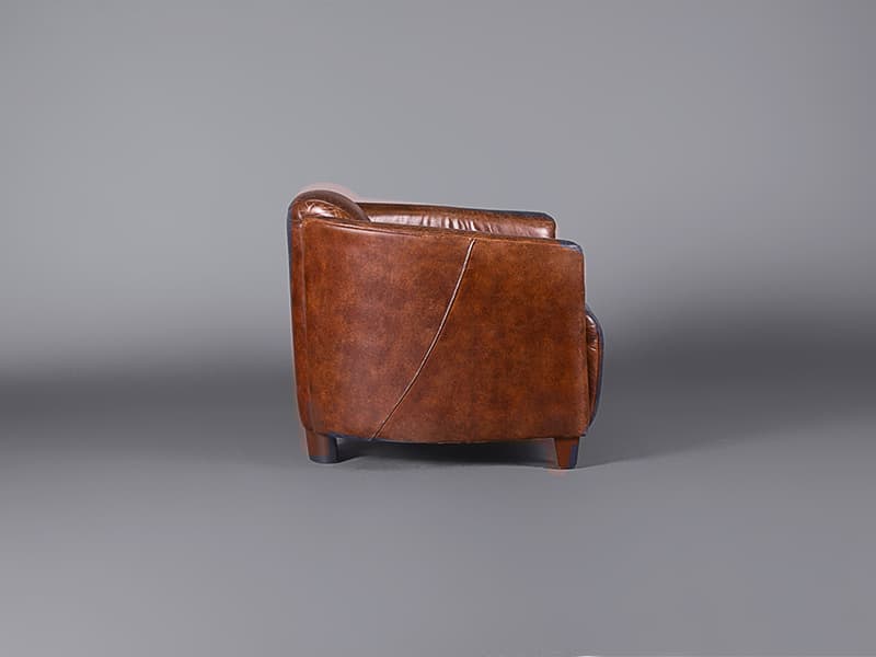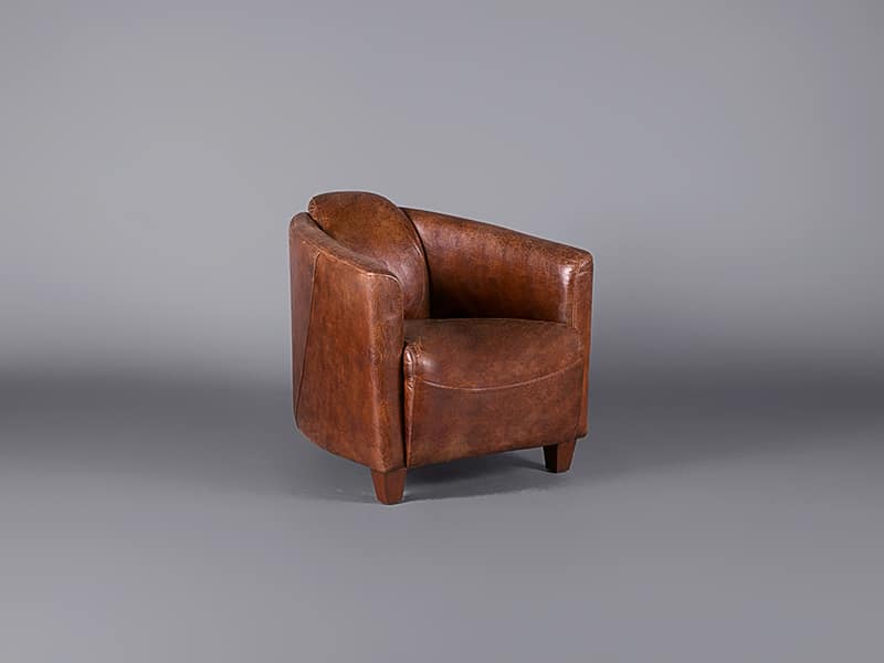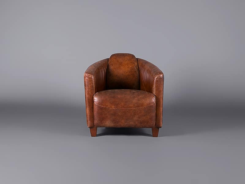 This club chair exhibits an aged leather finish. That “lived in” look is perfect for events with a classy, relaxed vibe. The classic proportions make it a wonderful addition to a cosy nook at your event.