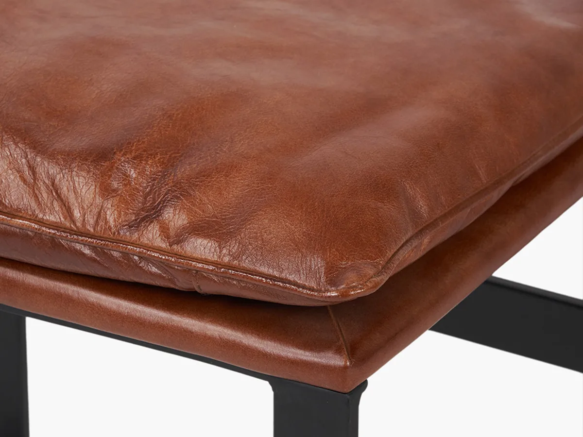 Combining a rich warm leather upholstery with a sleek black metal frame, it’s a contemporary take on the urban vintage look of a low leather stool.