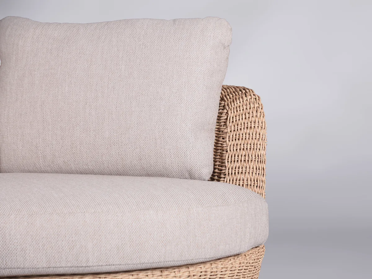 The gently curved shape creates a welcoming silhouette that feels as good as it looks, making it ideal for stylish outdoor lounges, terraces and open-air hospitality spaces.