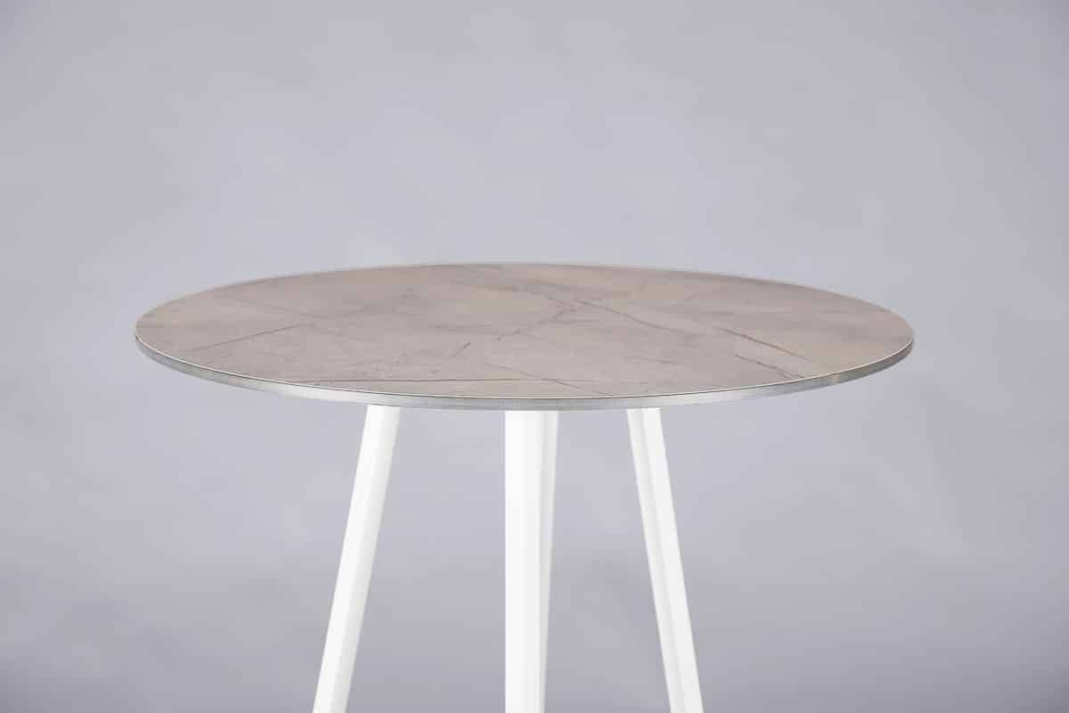 For a touch of sophistication, the Nova Poseur Table in white with a white marble top is the perfect choice.