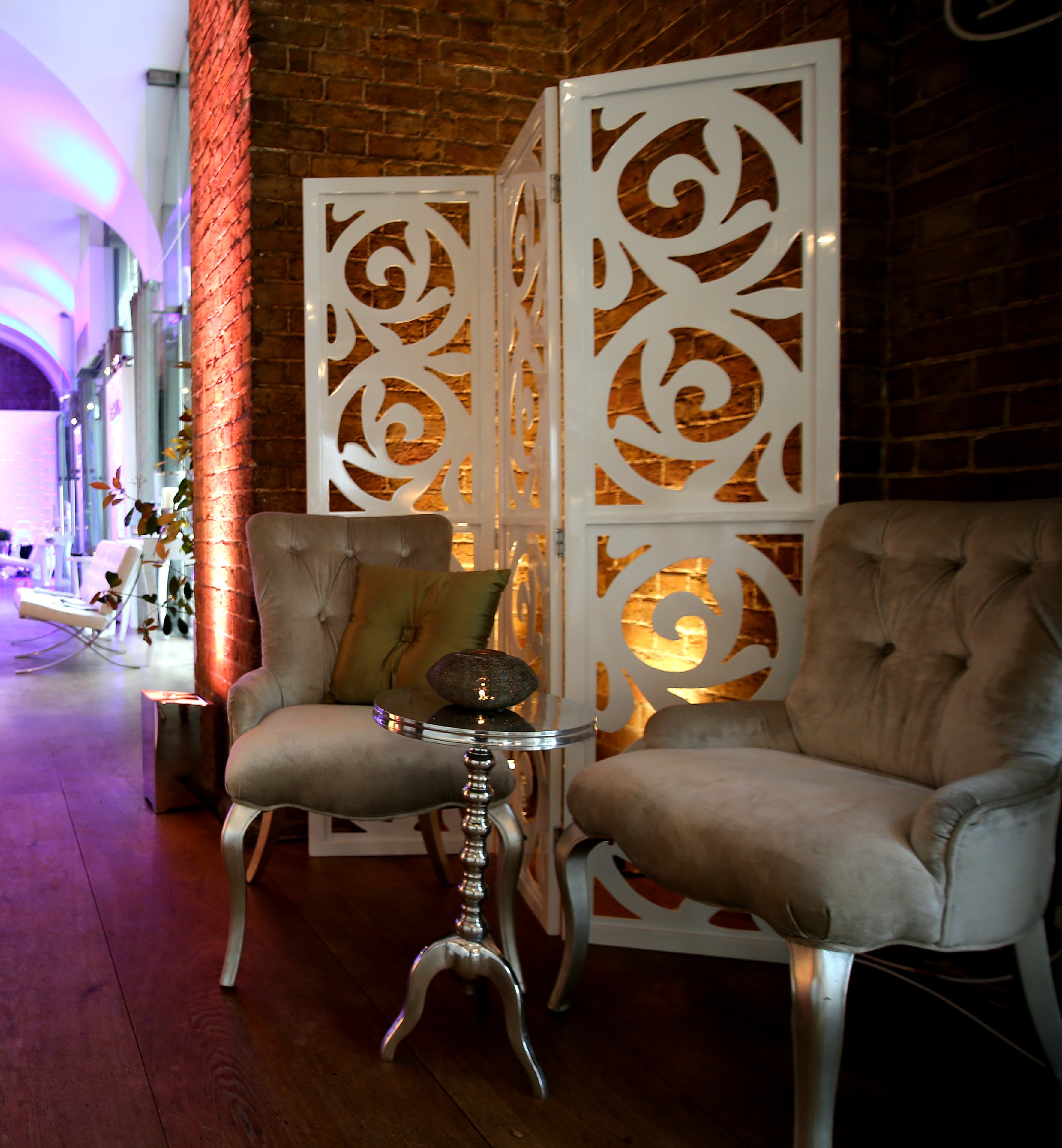 Functional and beautiful, this 3 fold screen will perfectly partition your event. Separate the space in whatever way you wish. We have plenty of these screens available to hire, so you have full control over how your space is used.