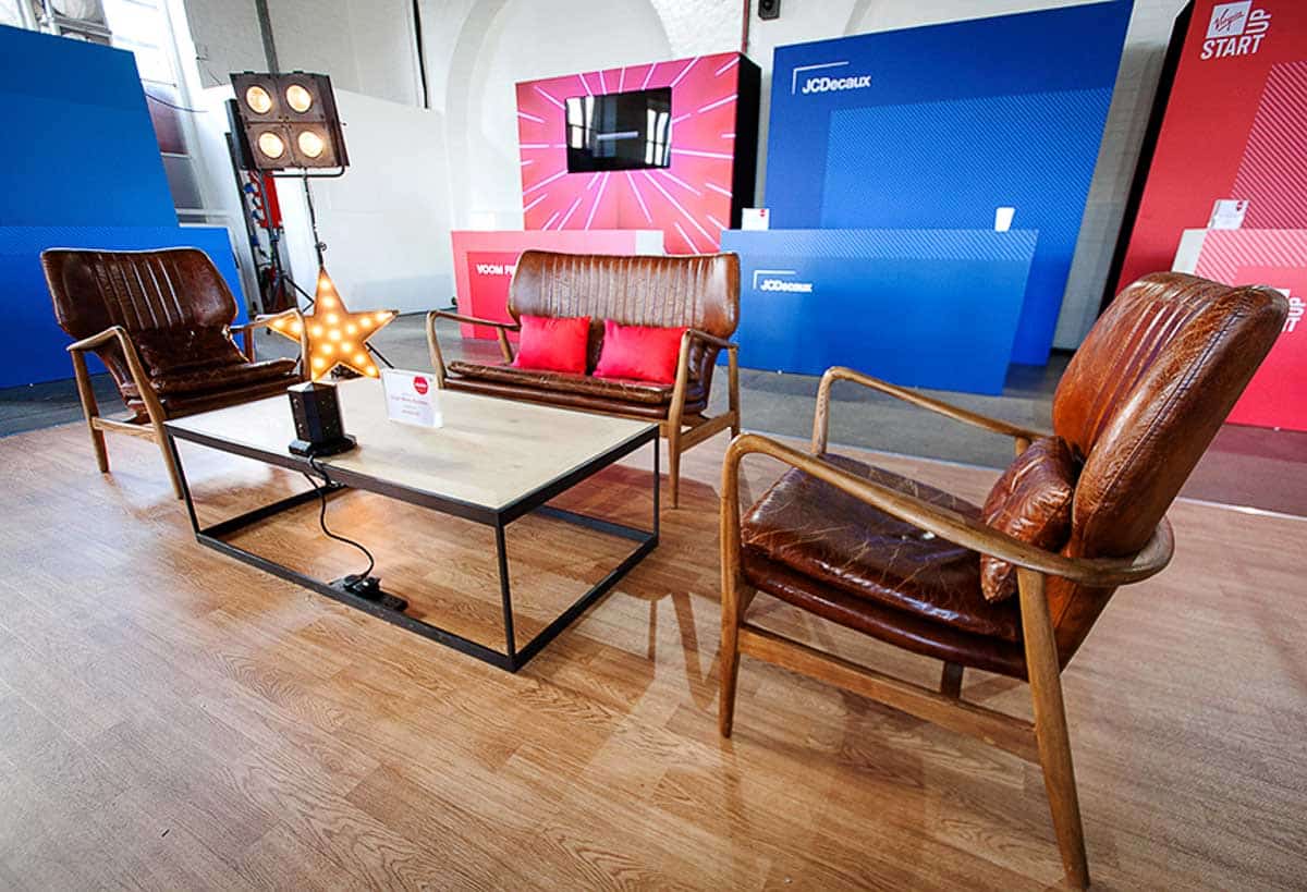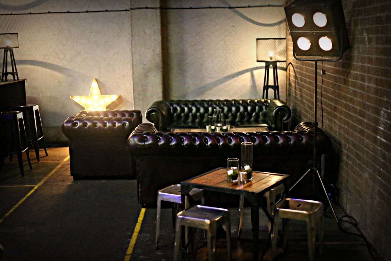Aged repro flood lighting will bring a touch of Hollywood to any event. Standing on a metal tripod, the look is at once industrial and glamorous.