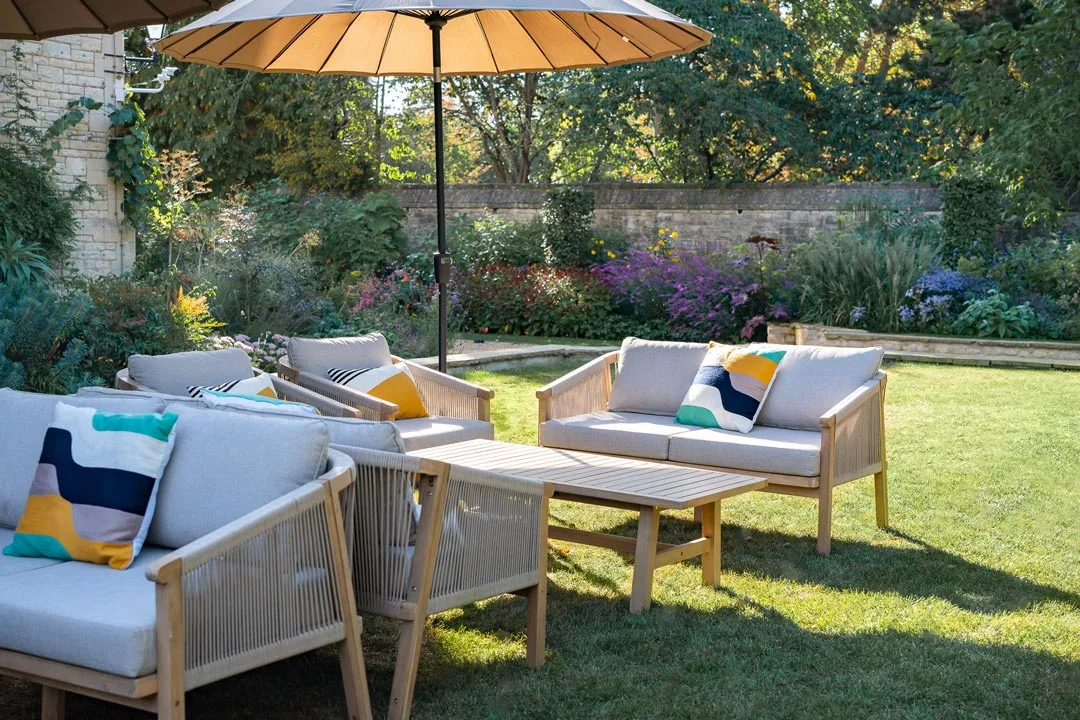 Part of the Sorrento collection with a matching sofa and armchair, it’s perfect for stylish lounges and outdoor events.