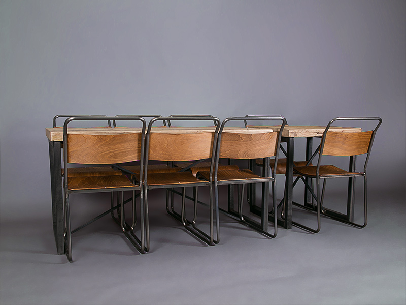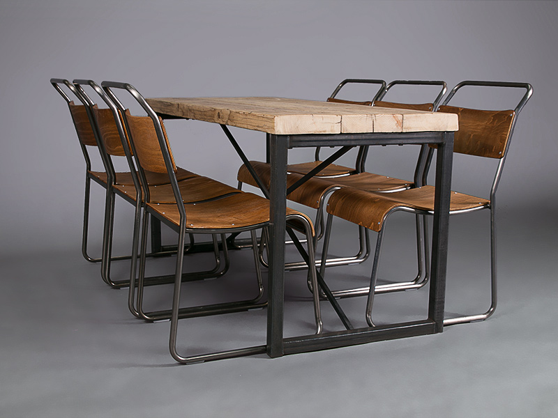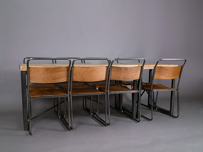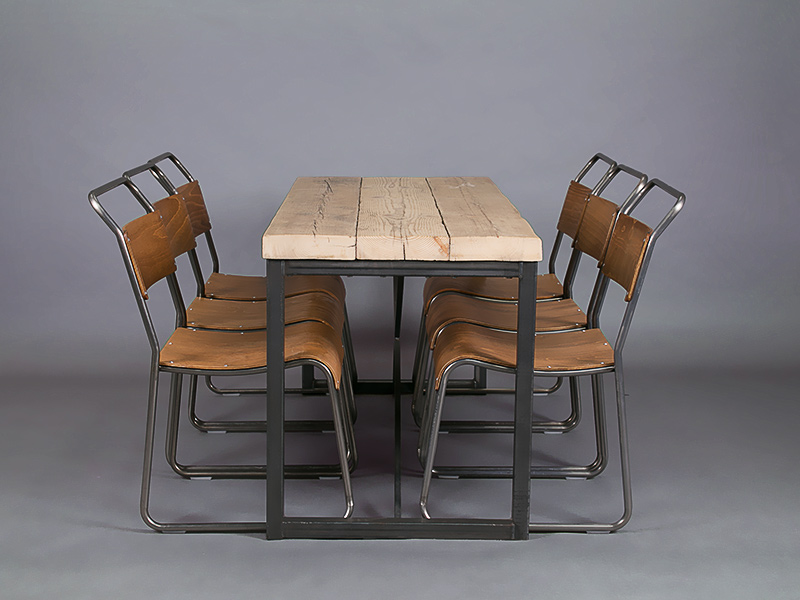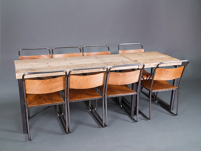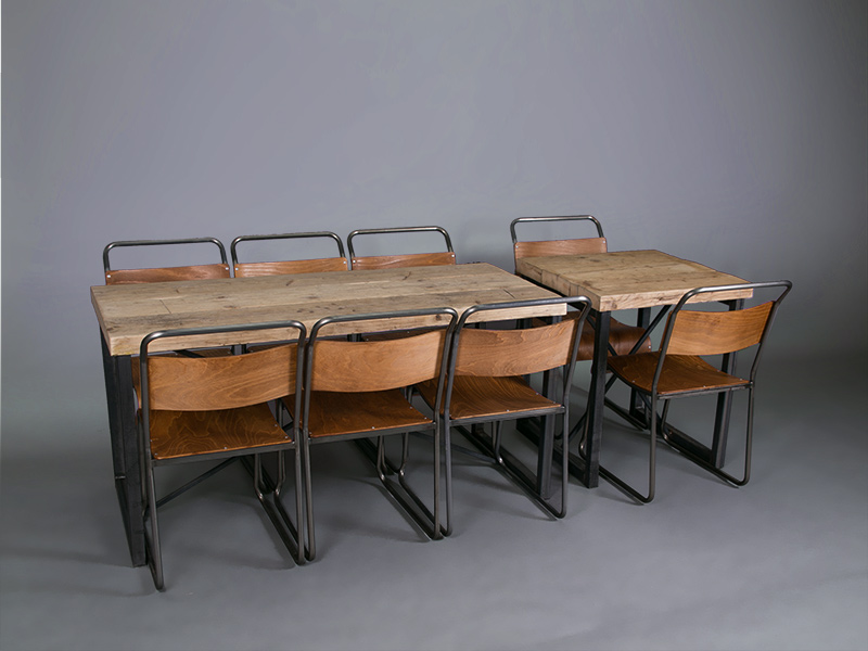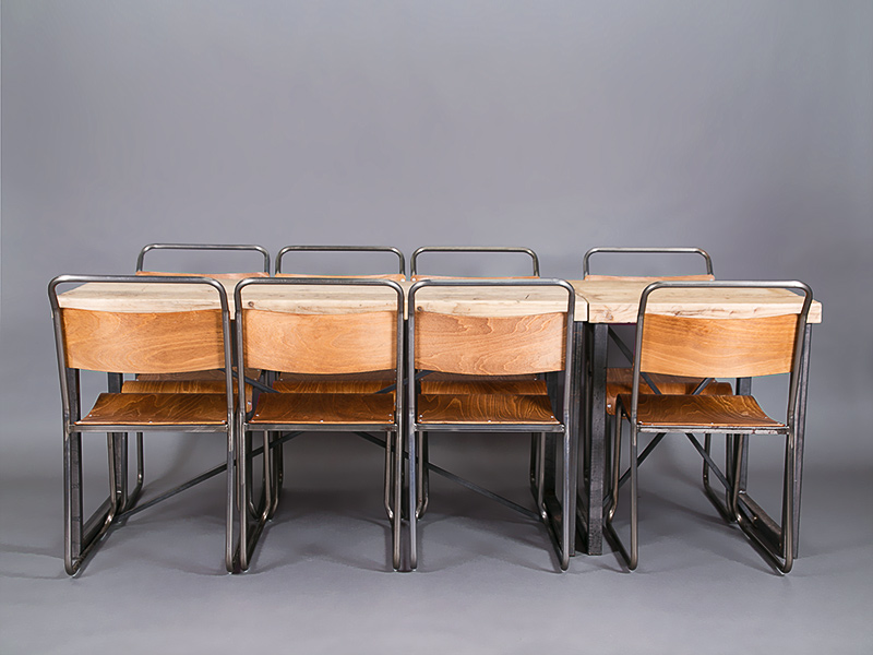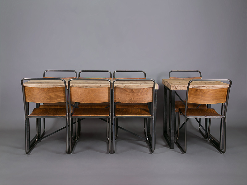 We particularly love to pair it with our industrial chairs, and it looks great with our vintage school chairs as well. Scroll through our photos of the Foundry dining table to see what we mean.