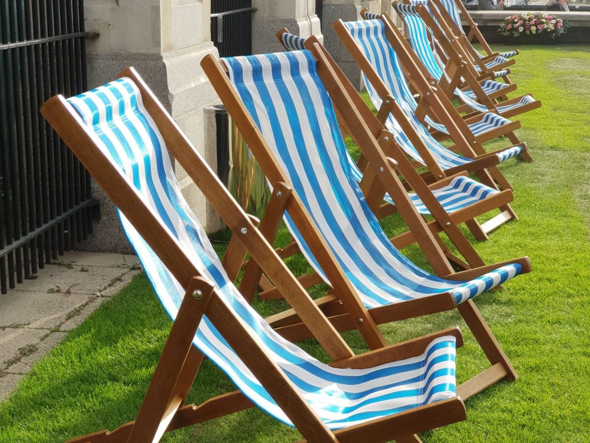 Who doesnt love a day at the seaside? Even if youre in the city, well help you to create the vibe. Hire our classic blue and white deck chairs and your guests will get in the holiday spirit.