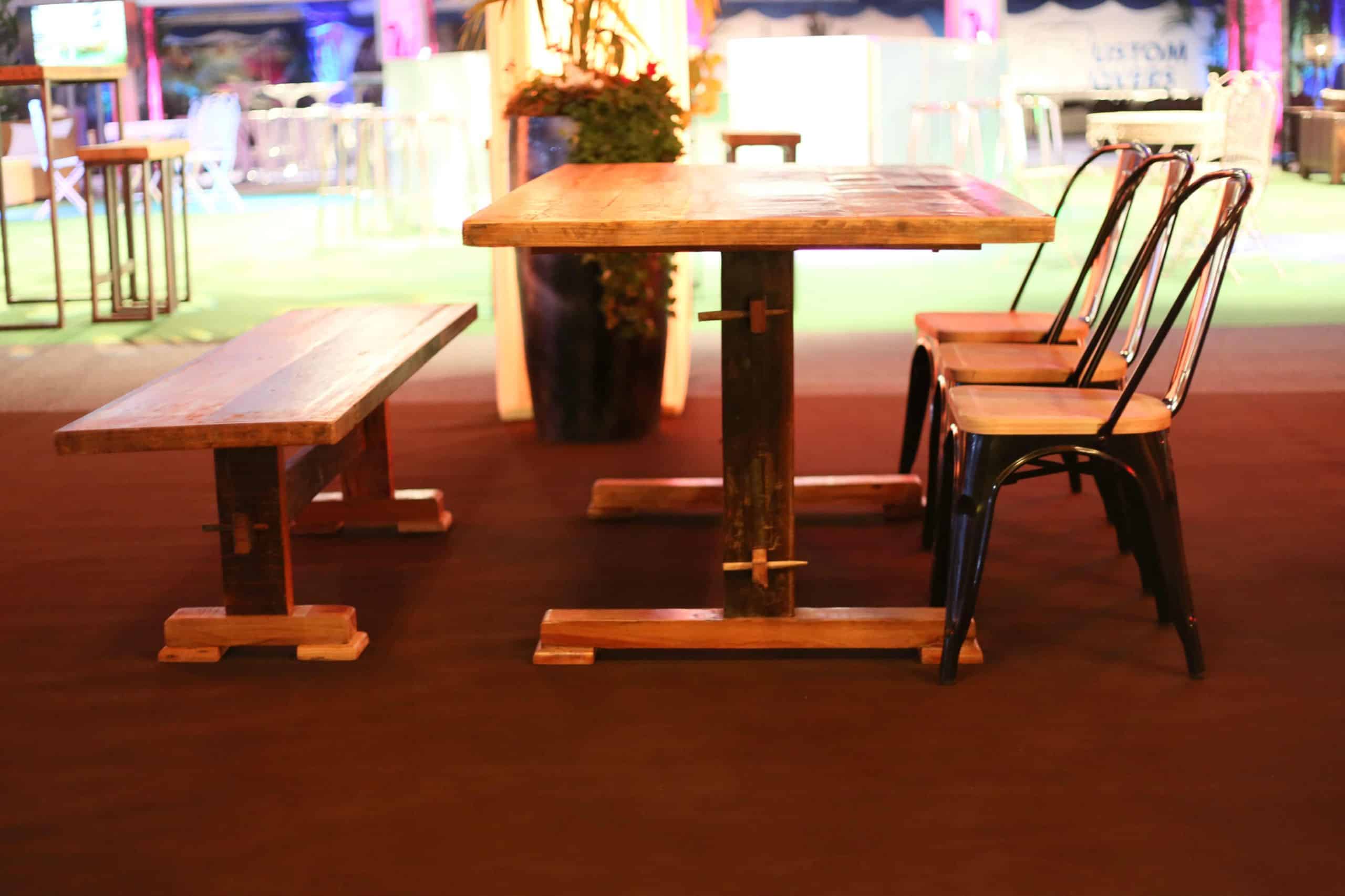 This unique, handcrafted timber bench has an interesting back story. You can read it on our blog here. It’s made from reclaimed wood, and there’s a matching table available. An earthy beauty!