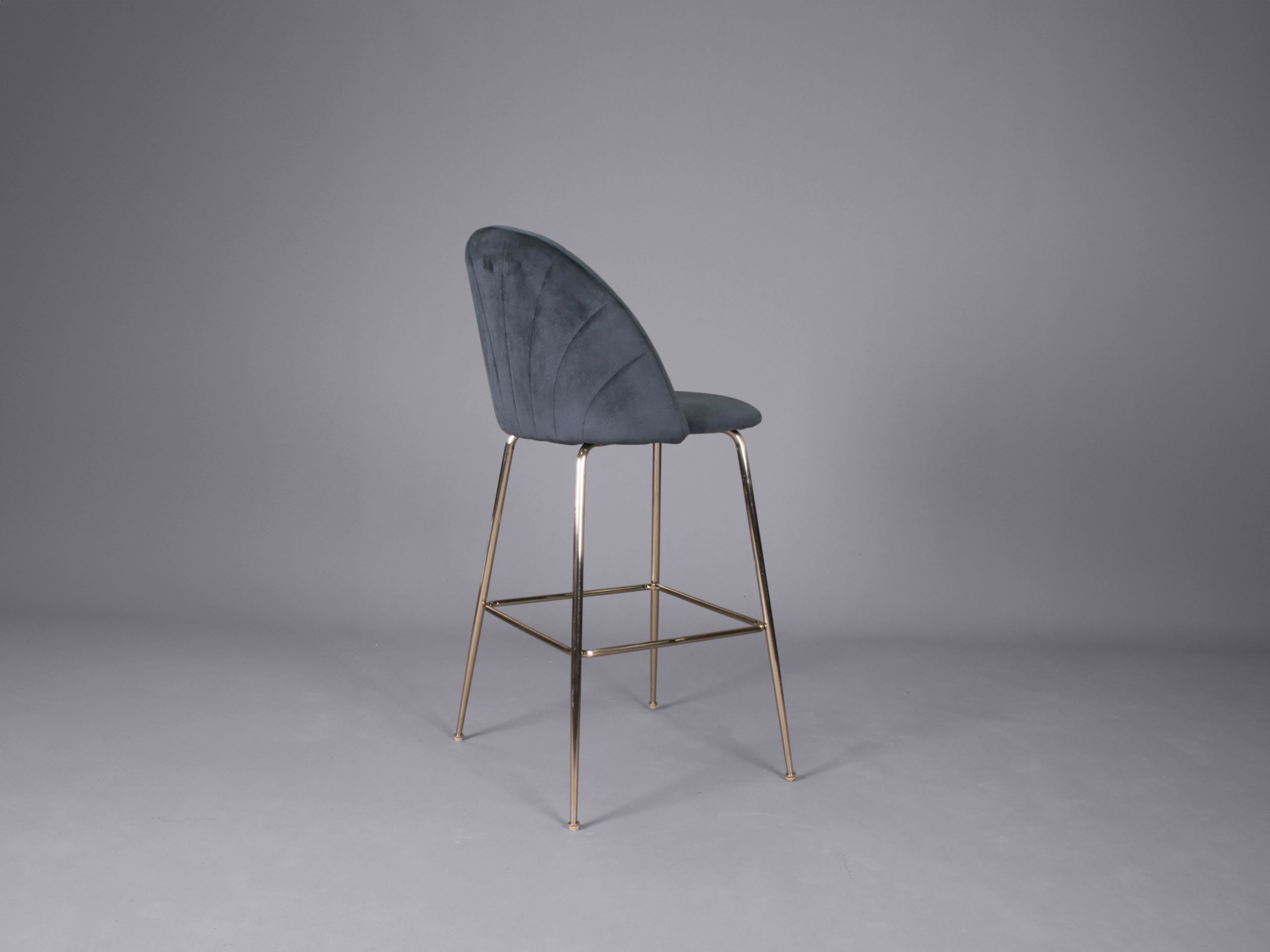 This classy stool features a back rest with a fan stitched design recalling the art deco era and an elegant brass finished metal legs.