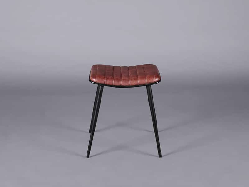 The ribbed seat in a vintage leather finish gives the stool a retro feel making it a great addition to an industrial loft inspired lounge area.