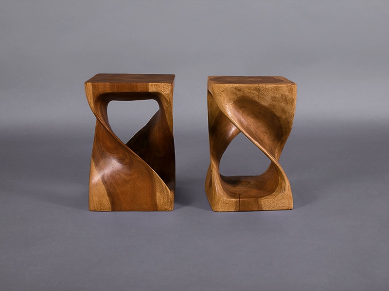 Whether you use this piece as a table or a stool, it’s a show-stopper. The artistic design blends with the unique pattern of natural wood to create a stunning look. We have a taller version available as well, so you can mix and match them.