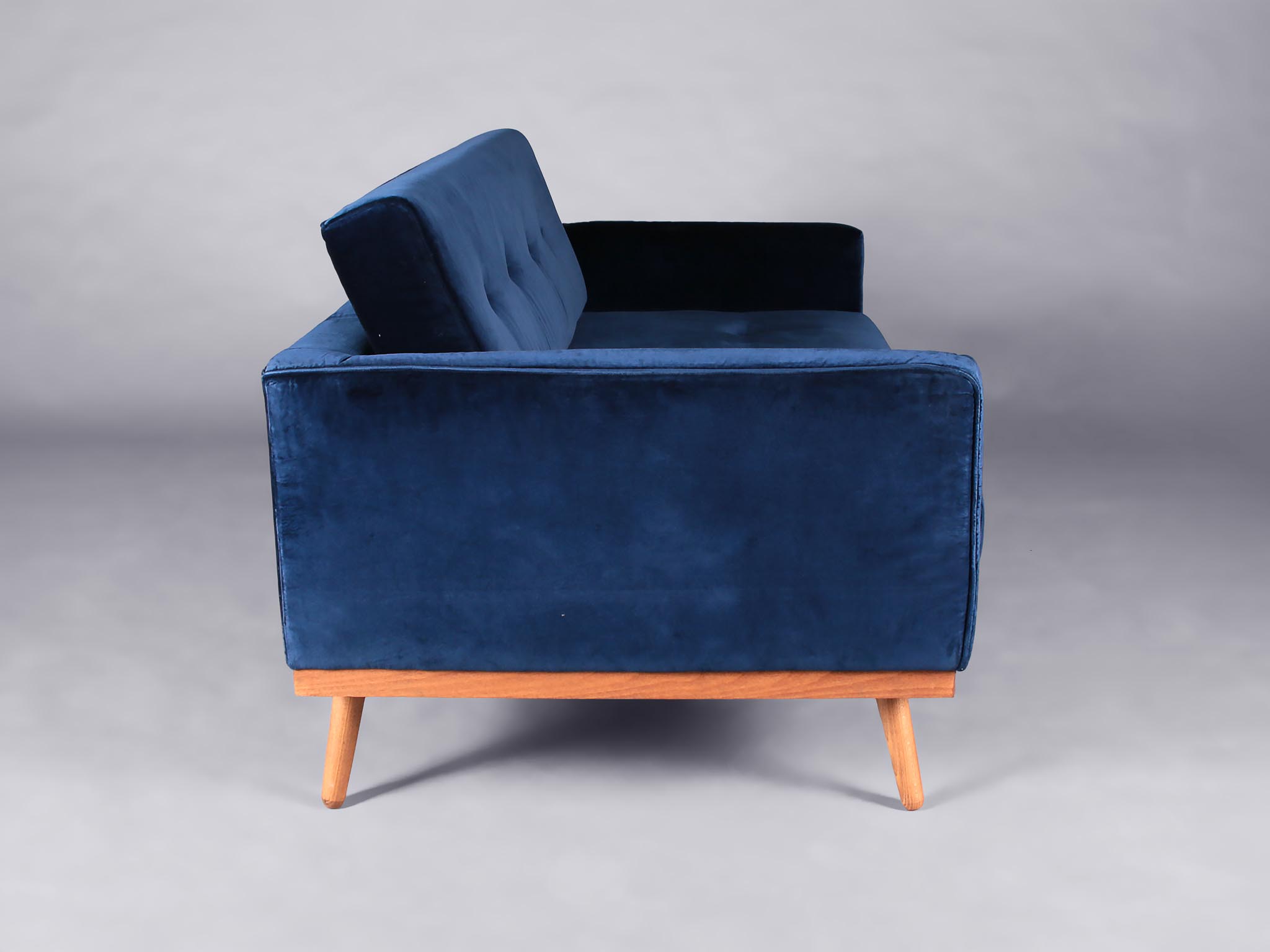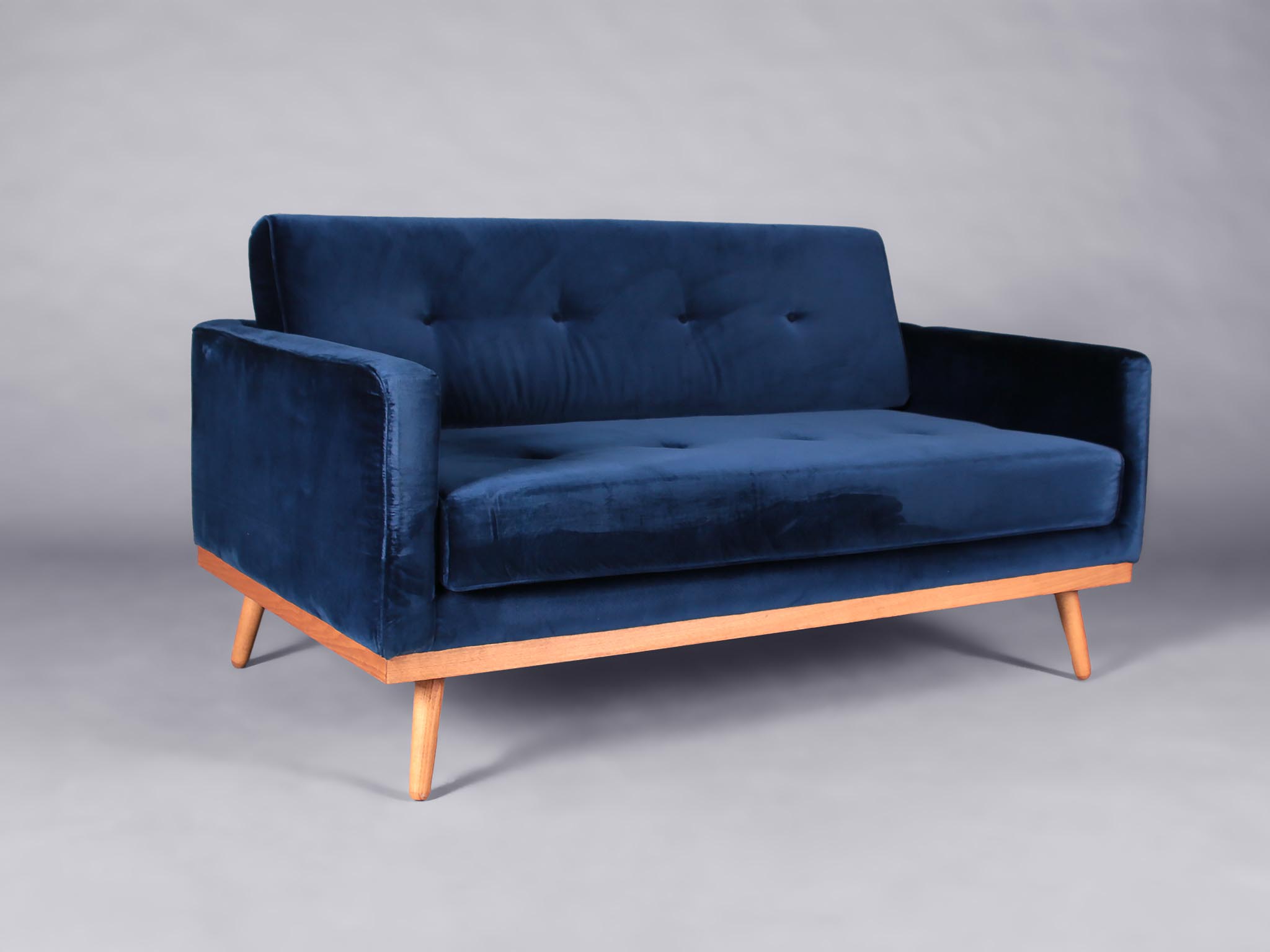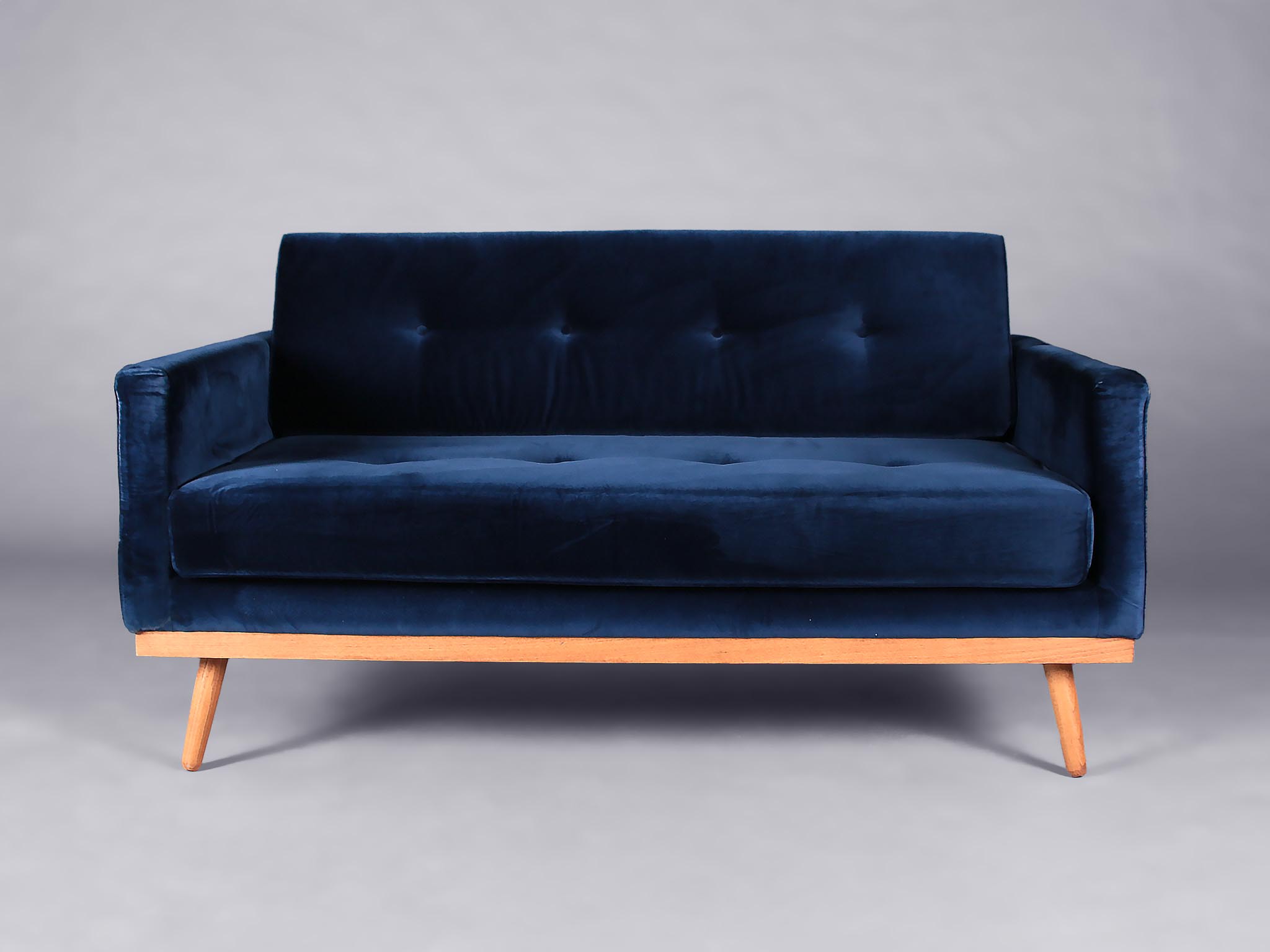 Sleek and chic, this sofa is midcentury perfection. It’s upholstered in the most beautiful velvet. Pairing a navy shade with the light wooden texture of the legs give this sofa a Scandi touch. We have a matching chair available, so you can create a lovely lounge space.
