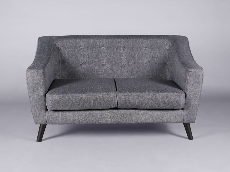 The Portman sofa is a contemporary 2 seater sofa with a midcentury flare. The sofa is upholstered in a soft grey fabric that you can match with almost anything.