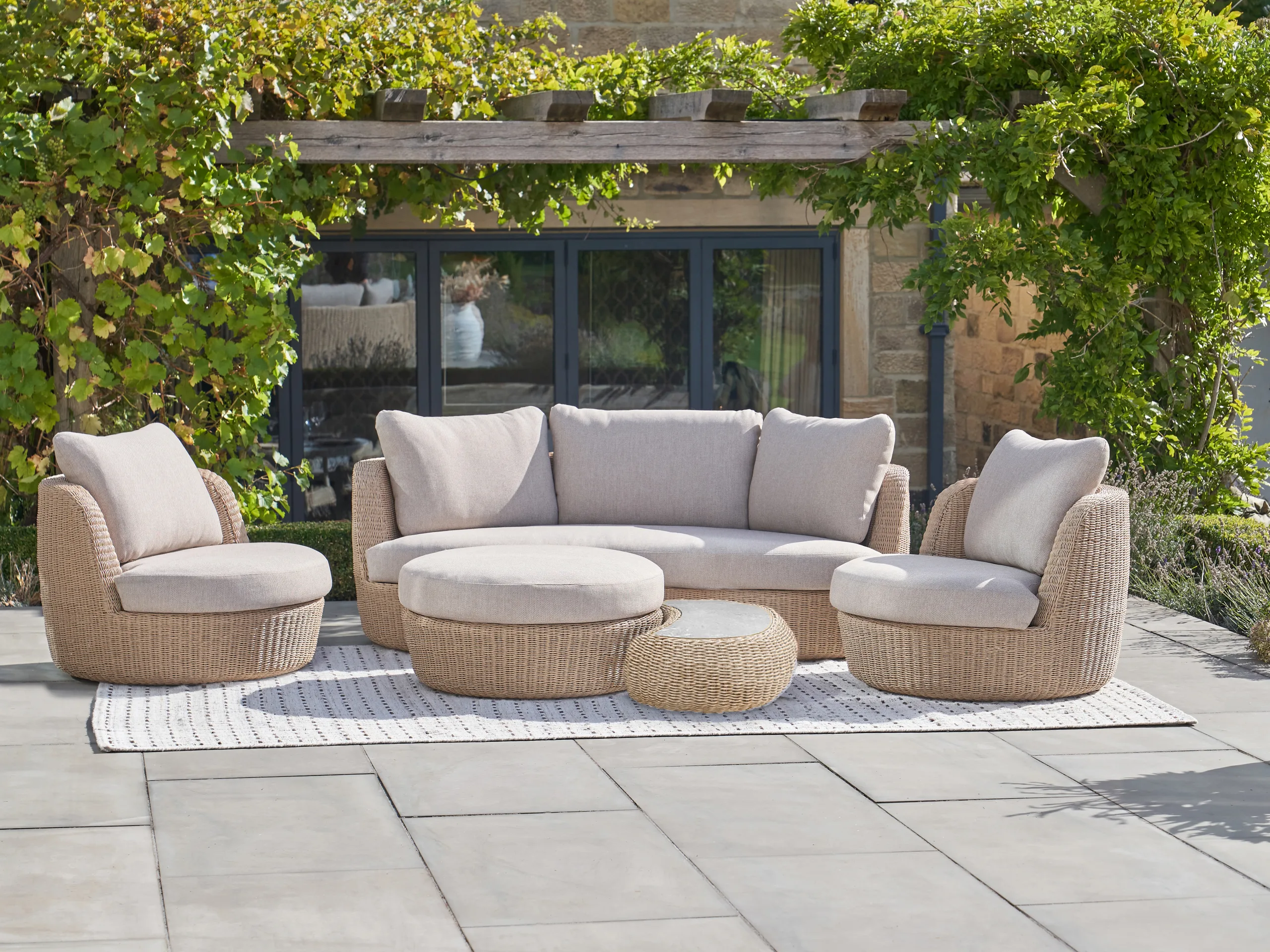 The gently curved shape creates a welcoming silhouette that feels as good as it looks, making it ideal for stylish outdoor lounges, terraces and open-air hospitality spaces.