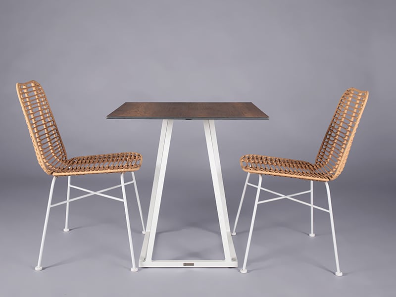 Its sleek, square design and natural wood finish bring a fresh, modern feel to any space, making it ideal for dining setups, networking areas, or outdoor lounges.