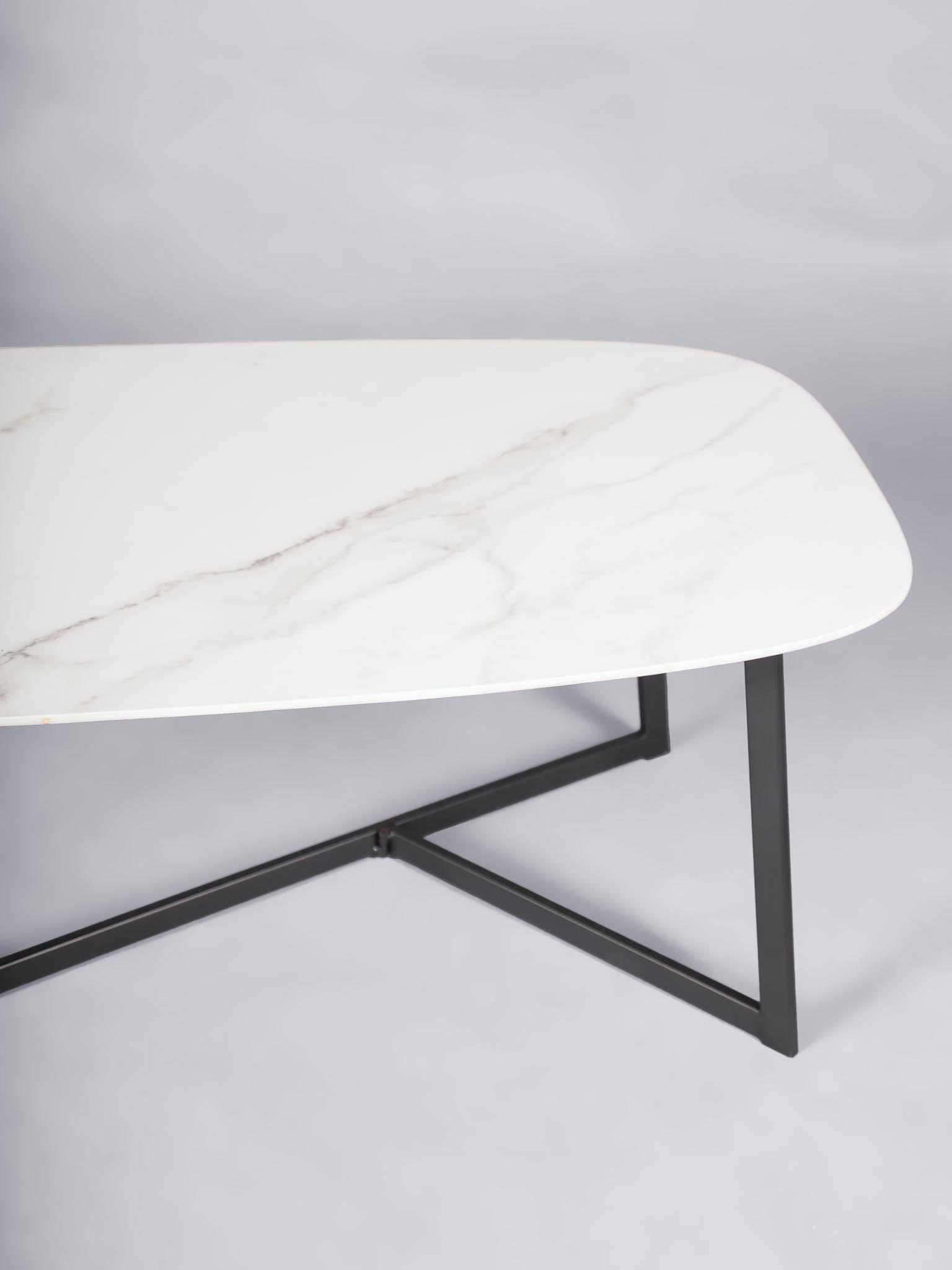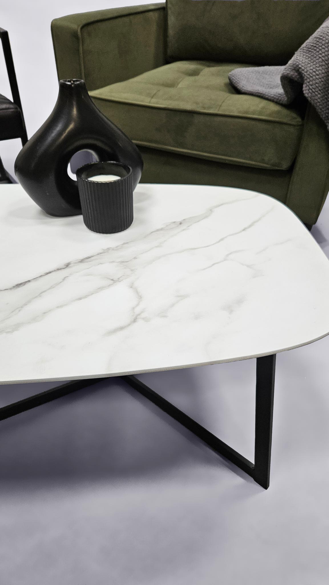 This contemporary coffee table features a white faux marble top and an unusual stepped cross design on the base. This stylish piece is perfect for creating a modern and sophisticated look, whether you’re hosting a wedding, corporate event, or photoshoot.