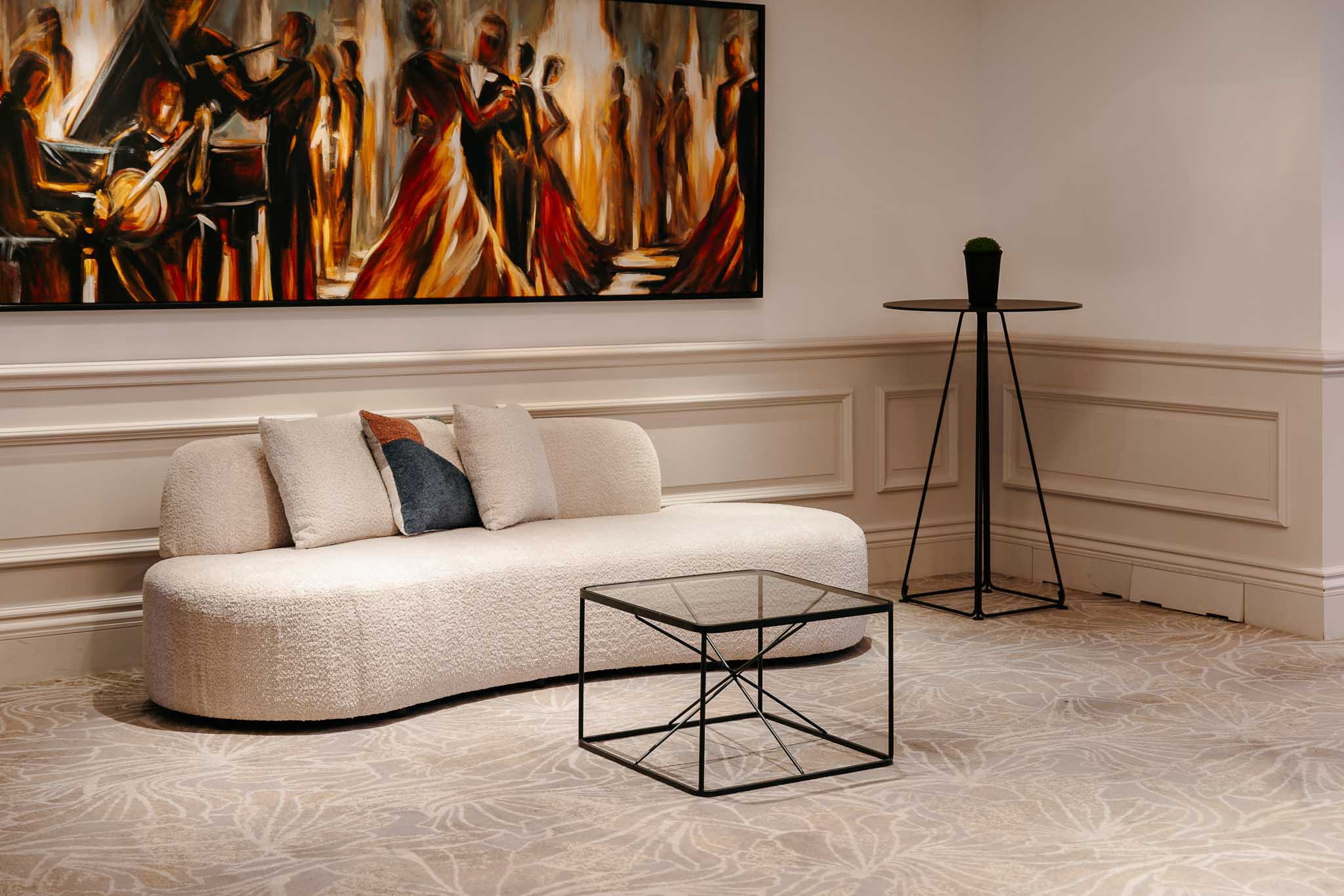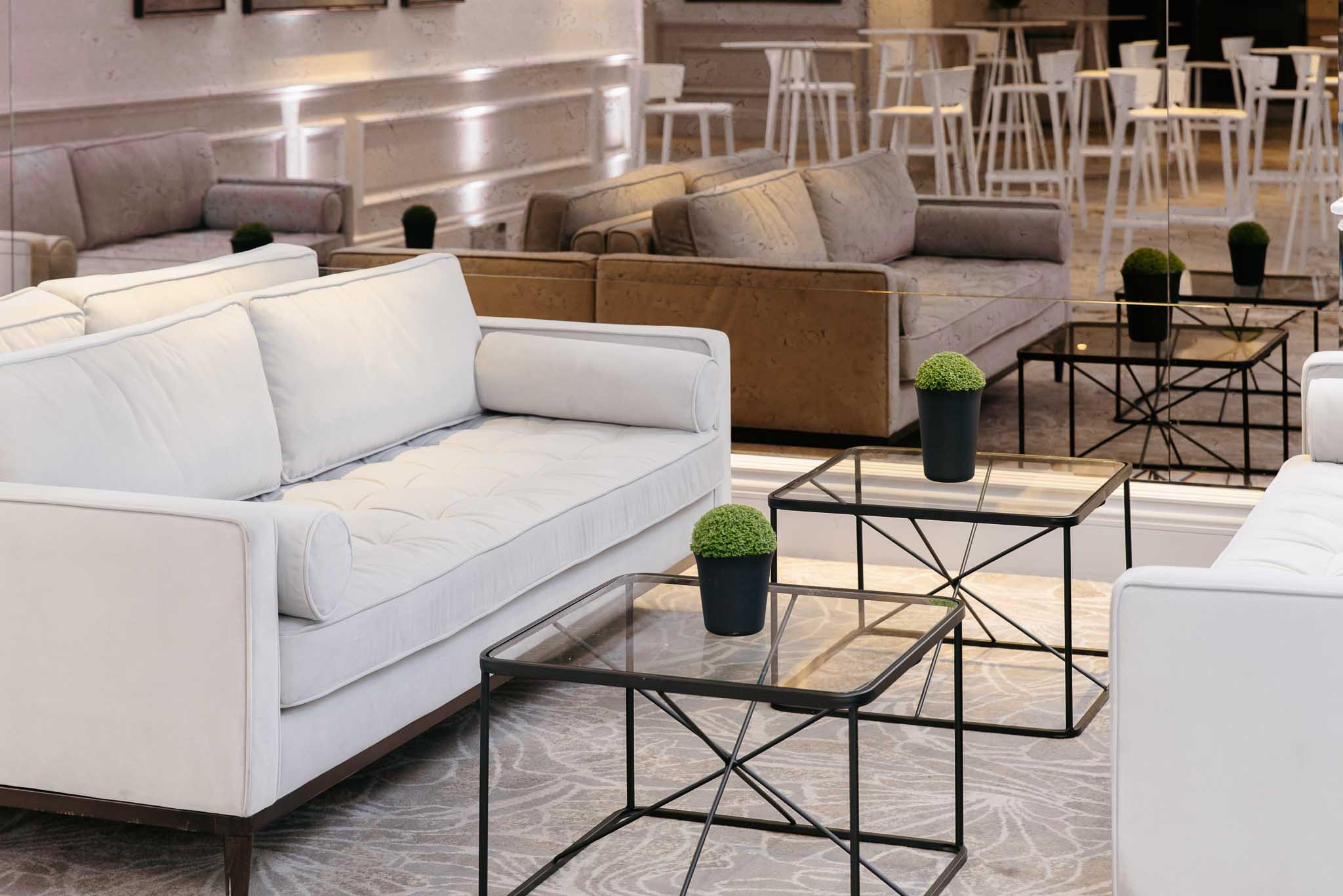 Think geometric shapes but make it elegant, with its star-like crossed black metal frame and inset clear glass top this coffee table is a modern statement piece.