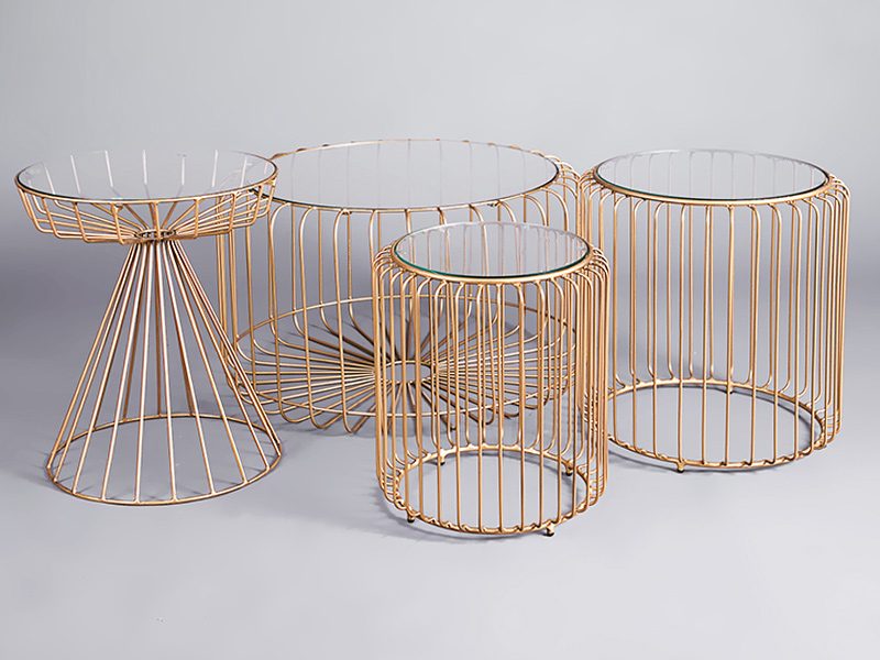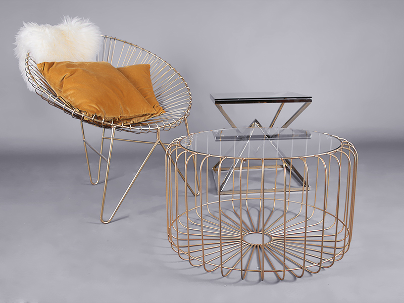 This glamorous range of tables was an instant hit. Each table has a powder-coated, matte gold finish and a smooth glass top. Fine, geometric lines add a contemporary edge. We love an art deco-themed party, and this table is perfect for it. Gatsby would approve.