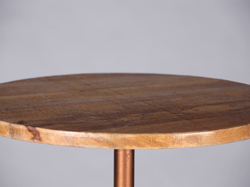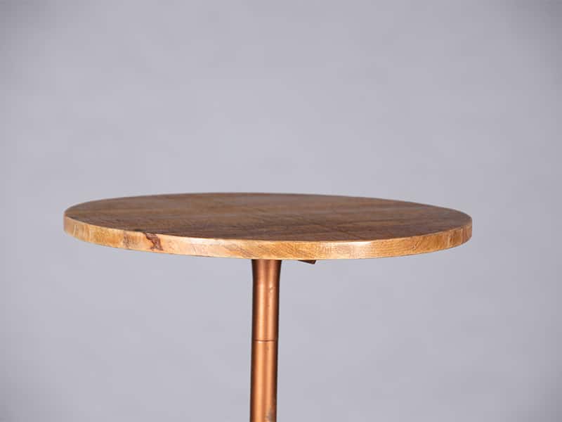 The Colorado poseur table features a copper base and a solid wood top. It has an elegant yet rustic look and can be a great addition to your event, especially when combined with the matching bistro table.