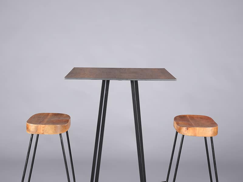 Its rich wood surface and sleek black frame make it a great fit for standing receptions, cocktail lounges, and networking spaces.
