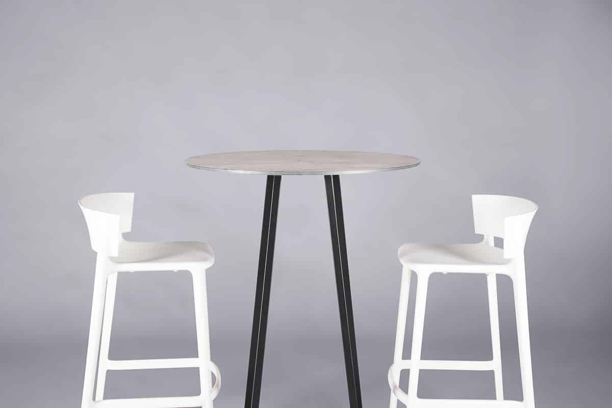 With a striking white marble top, the Nova Poseur Table in black brings a modern, industrial feel. Its powder-coated frame is durable and lightweight, ideal for stylish gatherings.