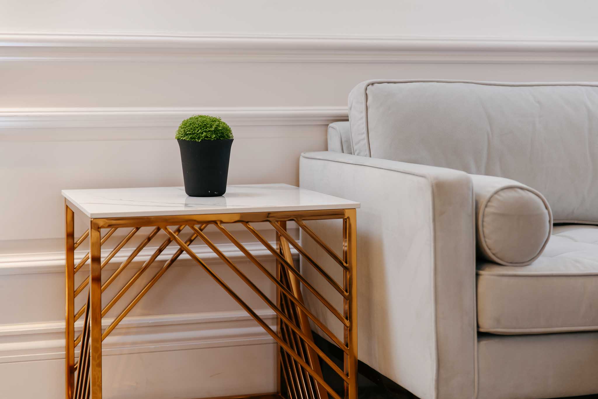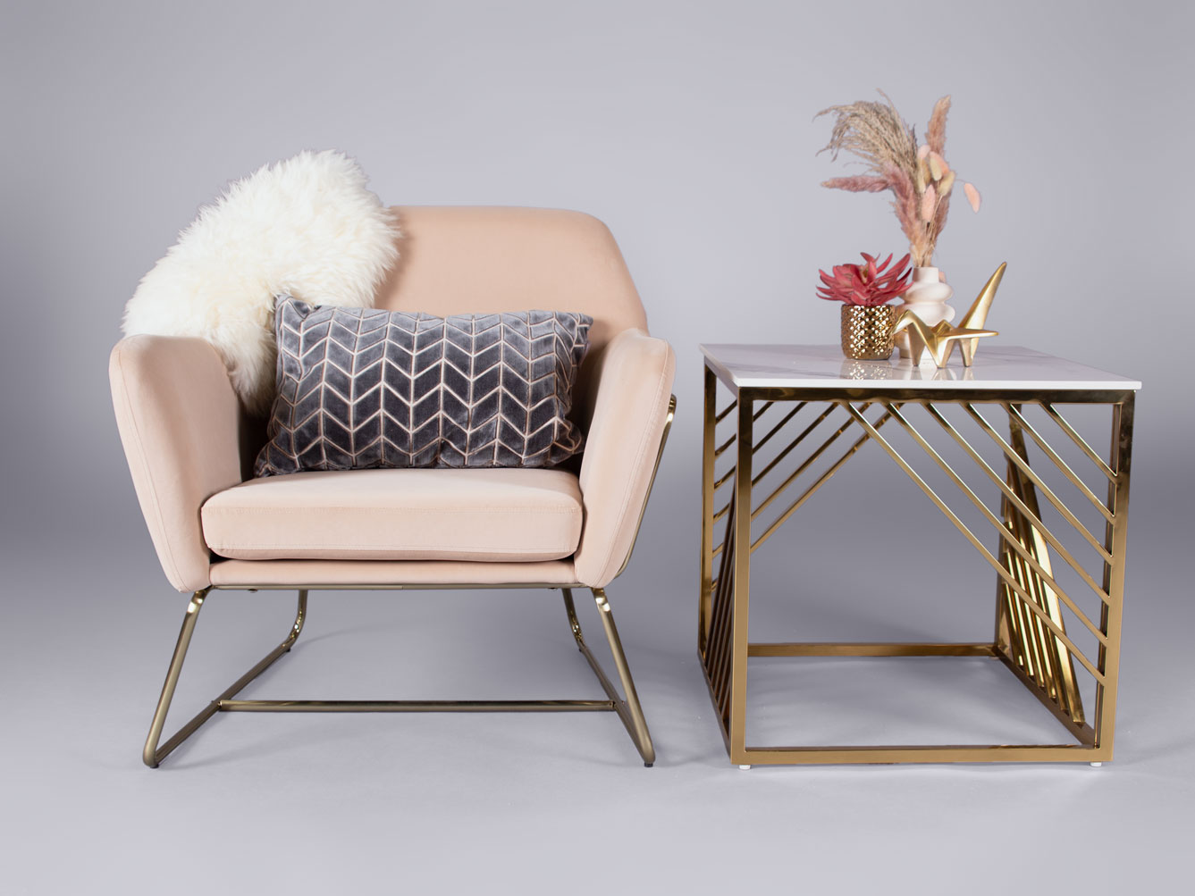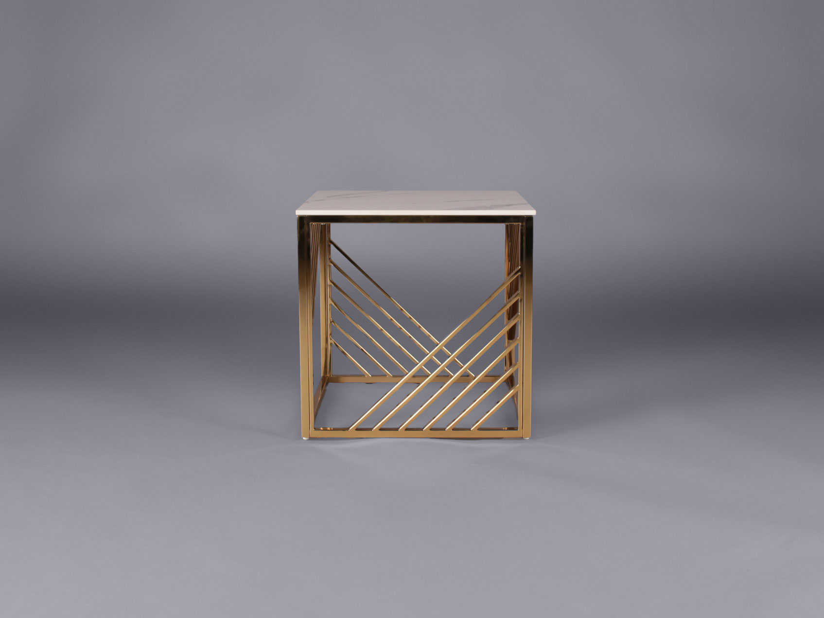 Don’t settle for ordinary, let our Osaka side table bring the glam to your event. This trendy side table features a sleek gold metal frame with modern geometric patterns and a faux white marble top, making it the perfect accent piece for your next event. Small yet impactful, it’s not just a side table, it’s a conversation starter! Matching coffee table available.