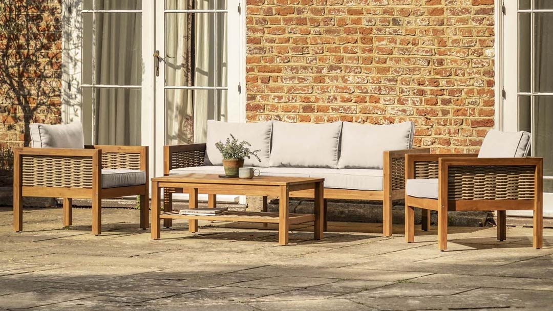 Contemporary Design: The Tikal Lounge Set offers a modern take on traditional garden furniture, combining sleek lines with natural materials.